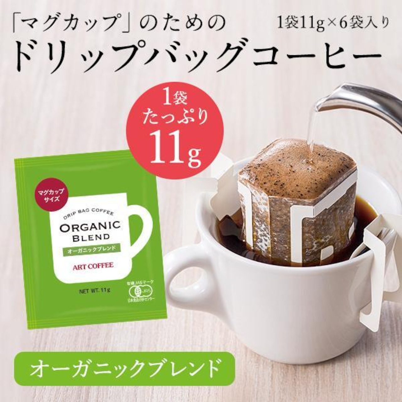 ドリップコーヒー オーガニックブレンドマグカップ専用11g 6個 18袋